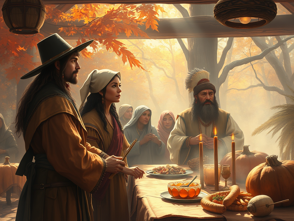 The fall harvest was good, and they had enough corn to last them through the winter. They decided to have a thanksgiving feast, based on the Hebrew harvest Feast of Tabernacles to thank Almighty God for His great blessings, and to invite Massasoit, who showed up with 90 Indians and stayed 3 days. How to feed such a crowd and make it through the winter? But the Wampanoags brought 5 dressed deer and more than a dozen turkeys. The Indian women taught the Pilgrim gals how to make hoecake from corn and maple sugar, and how to make popcorn in earthen vessels. So everything worked out well.